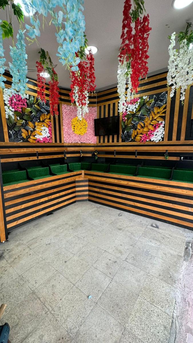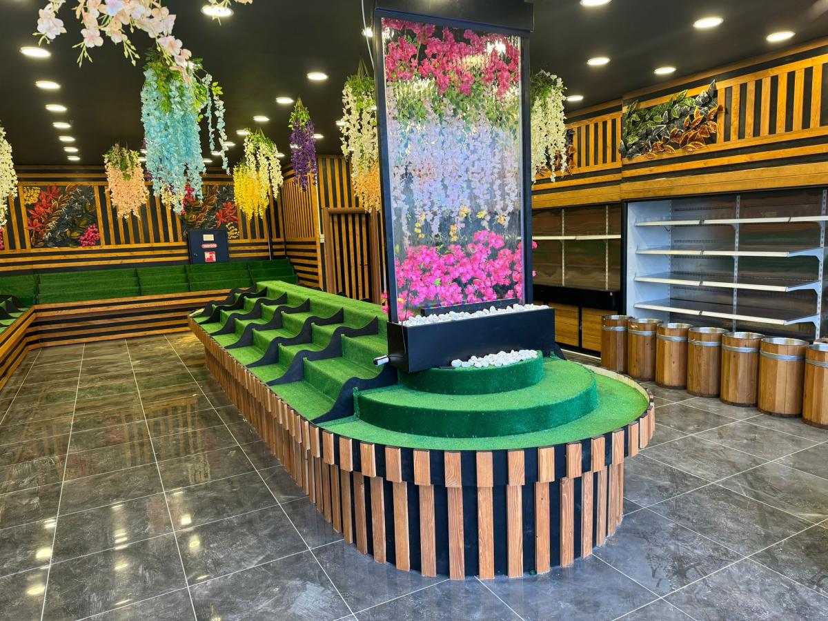 Ahşap Duvar Döşemeli Çiçekli Manav Tezgahı