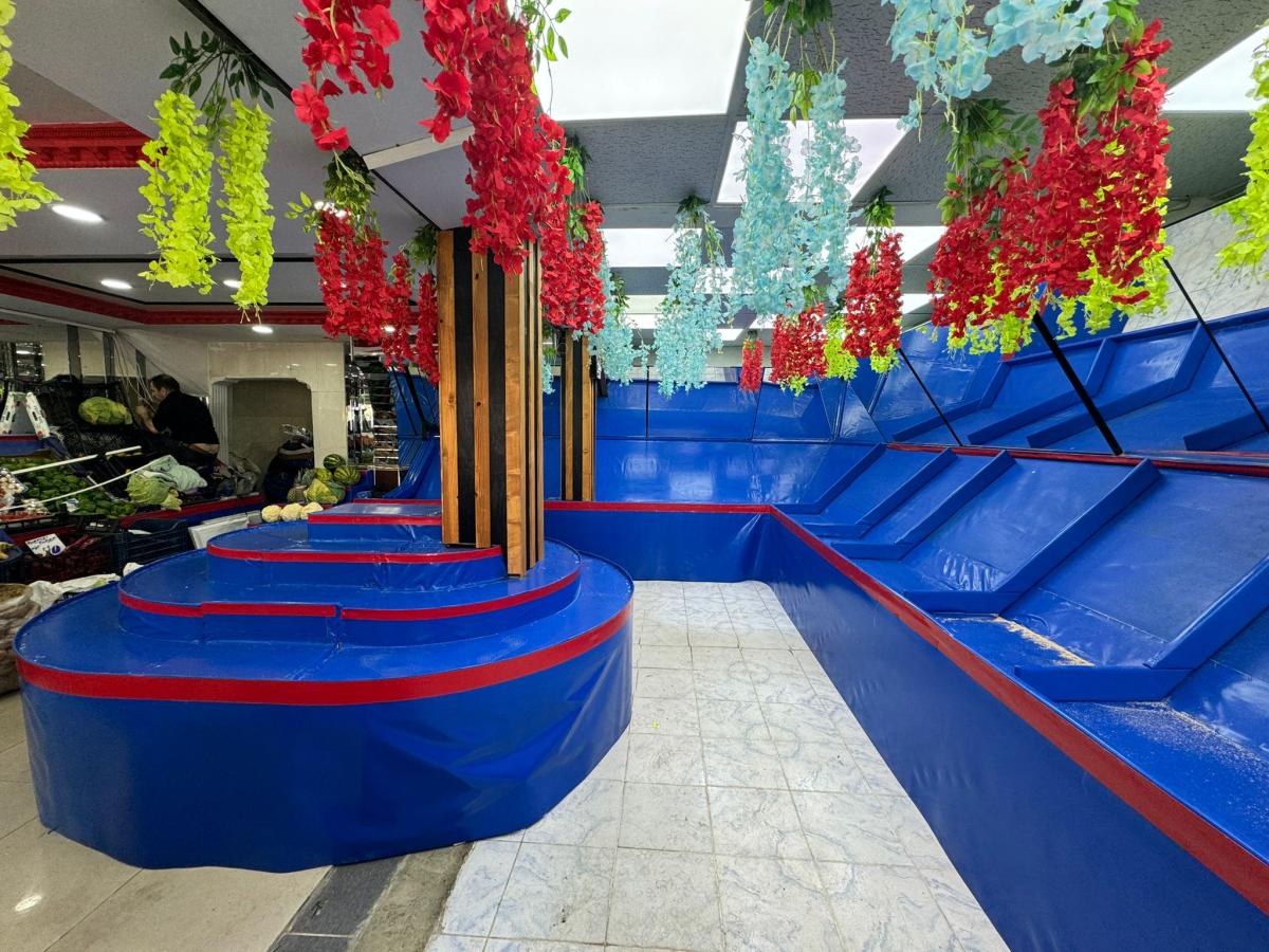 İki Katlı Çatısız Ahşap Manav Tezgahı